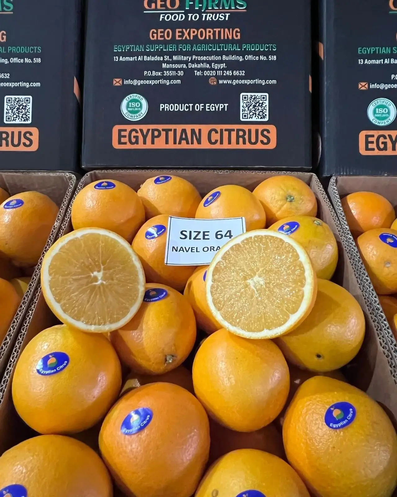 GEO EXPORTING is a premier Egyptian Navel Oranges Supplier, delivering the world’s favorite winter table orange directly from the Nile Delta. Known for their seedless flesh, large caliber, and exceptional sweetness, our harvest runs Nov–Mar.