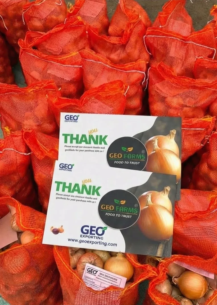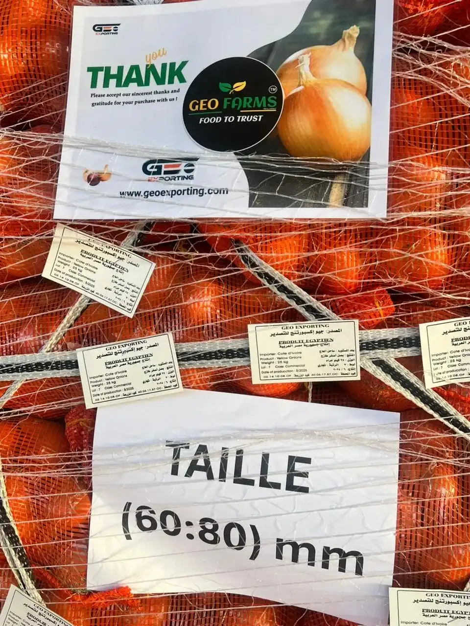 Searching for premium Egyptian Golden Onions? GEO Exporting is your trusted Onion Supplier. We supply GlobalG.A.P certified Wholesale Yellow Onions—field-cured and optically sorted—in 10kg/25kg Mesh Bags or 1200kg Jumbo Bags. Request your quote for Bulk Onions today.